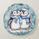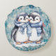 Coussins Ronds Pingouins D'Aquarelle Bleu D'Hiver Avec Écharpes