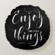 Citation élégante coussin ronde avec une calligraphie moderne blanche et fantaisiste - un accent parfait à n'importe quel espace. Ce design est disponible en variété de produits et de couleurs. "Profite des petites choses."