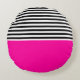Coussins Ronds Rose néon avec rayures noires et blanches