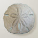 Un coussin de forme ronde et un duvet de sable fin sont à votre disposition pour décorer une maison de plage ou une chambre à thème côtière. Les deux côtés du coussin sont remplis d'une image réaliste de dollar de sable. On dirait qu'il l'a fait quand il a été retiré de la plage de Floride où il a été trouvé. La couleur arrière - plan est bleu-gris clair et se manifeste à travers les trous et autour des bords du coussin. Sélectionnez un tissu favori.
