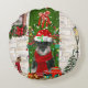 Schnauzer Chien Noël assis à l'extérieur de la maison décorée avec la couronne de Noël, sapin de Noël est une idée cadeau de Noël parfait pour les amoureux de les chiens.