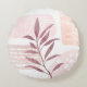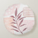 An abstract watercolor featuring patterned shapes and a botanical in a palette of maroon and soft calming colors.