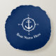 Coussins Ronds Votre nom de bateau avec Compass Ancre Marine Blue