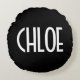 Coussins Ronds Votre nom, texte gras blanc | Noir