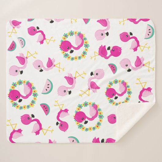 Couverture Sherpa Motif tropical, Flamants roses, pastèques, Fleurs