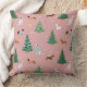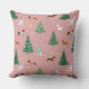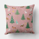 Een schattig kussen met speelse teckels, Dalmatiërs en Westies omringd door sneeuwvlokken, versierde sparren en feestelijke cadeaus. Het winterse ontwerp, tegen een rozen achtergrond, brengt een vrolijke kerstsfeer naar elke ruimte.