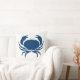 een deel van de oceaan thema decor CRAB op blauwgroen blauw kussen aan de ene kant en blauwgroen en wit strip aan de achterkant. Ontworpen door Sandy Closs