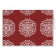 Ce mandala blanc est assis sur un arrière - plan rouge foncé. La couleur est riche et chaude. Partie de la collection Mola Mandala.