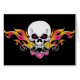 Un crâne méchant avec des crocs et des flammes et des coeurs de ceintures roses.