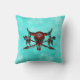 Il s'agit d'un crâne de buffle unique "Un d'un genre" et Flèches Jeter l'oreiller! Il comporte un crâne de Buffalo et des flèches en Turquoise, Orange et Noir... sur un Arrière - plan Turquoise et Blanc ! Design D'Art Original Par L'Artiste Kerry Miller.