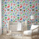 Dit is een geweldig behang voor kinderkamers. Het is een ontwerp in krijtstijl met vormen van harten, planten en vliegers.