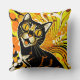 Kleurrijk retro abstract portret van een zwarte kat voor een kattenliefhebber in een kleurrijk kussen