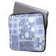 Crazy Quilt Blue Gingham Floral Personalized Laptop Sleeve