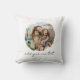 Create your own custom photo throw pillow. This cushion features two of your favorite pictures in a circle shaped watercolor brush stroke frame and personalized text for any occasion. A great gift for family and friends or your own photo memory keepsake.