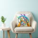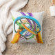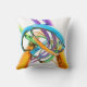 Gooi kussen met mijn computer abstract kunstwerk van metalen buizen en ringen in een kleurrijk collectie van blauw, paarse, groen en sinaasappel.