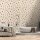 Crème oranje bloemmotief behang