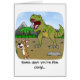 Net zoals de Pembroke Welsh Corgi zo slinks is, is de hond nog steeds slim genoeg om te weten dat wanneer je een Tyrannosaurus Rex ziet, het meest intelligente om te doen is RUN FOR UW LEVEN! Deze prehistorische scène heeft een T-Rex dinosaurus die krachtig naar de pooch steekt als hij paniekert en er zo snel voor loopt als zijn nubbybenen zullen gaan! Funny corgi art van Susan Stoneman. Deze kaart kan worden aangepast met je eigen persoonlijke bericht. Op dit moment zegt het: "Sommige dagen ben je de corgi, en sommige dagen ben je de T-Rex!"