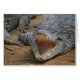 Gros plan d'un crocodile à bouche ouverte sur le sable jaune