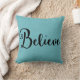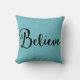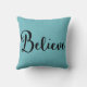 La police écrite par main dans le noir avec le mot "croient" sur un carreau de bleu d'oeufs de merle. D'autres tailles de coussin sont également disponibles. Conception de la vie de ferme.