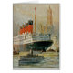 Vintage Ocean Liner illustration de l'Aquitainia, le paquebot océanique de Cunard, qui navigue sur le fleuve Hudson jusqu'à quai au début du XXe siècle.