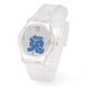 blauw ideogram van het Konijn op papier gesneden illustratie als achtergrond. U kunt eenvoudig het jaar en de kleur van het ideogram wijzigen door op de knop Aanpassen te klikken. Ontwerp op Silicone Strap Clear horloge met jonge stijlnummers. Perfect voor Chinees nieuwjaar van het konijn of verjaardag (mensen geboren in Konijnenjaar).