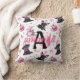 This custom pink and black Halloween throw pillow with a monogram features a cute pattern of pink ghosts, black dogs in witch hats, flying bats, stars, bows, pumpkins, and moons. Add a name and initial to make it your own. The soft color palette adds a girly twist to spooky season, perfect for Halloween party decor, haunted nursery accents, or any cozy fall corner. Ideal for dog moms, kids’ rooms, or kawaii lovers.