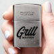 Custom Grill Master Zippo Lighter voor BBQ chef. Het zwarte en witte ontwerp van de manuscripttypografie van de kool met douanenaam. Manly Birthday gift idee voor koken, vader, echtgenoot, oom, broer, opa, gepensioneerde persoon, baas, medewerker, collega, enz. Personaliseer met naam of monogram.