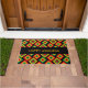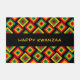 Aangepaste HAPPY KWANZAA-slaapstand met levendige en kleurrijke geometrische vierkantspatronen in rode, gele en groene zijden tegen een rijke zwarte achtergrond. HAPPY KWANZAA is zodat je je familienaam, 'Welkom' of andere tekst kunt toevoegen. Ideal voor buitenporselenkrans tijdens het Kwanzaa-seizoen.