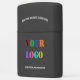 Custom Fonts and Color - Create Design Your Own Design Personalized Zippo Lighter example with Company Logo and Slogan , Social Media Branded Promotional Business Zippo Lighter template / Promotional Products / Corporate Gifts - Add Your Logo - Image - Photo or QR Code / Business Slogan - Tagline / or Name - Company / and Social Media Handle or Website / Email / Phone / More ! Resize and move or remove and add elements - image / text with Customization tool. Choose / add your favorite font / size / colors ! Please see my others projects / designs. You can also transfer this designs to more than 1000 Zazzle products. Please use your logo - image that does not infringe anyone's Copyright !! Good Luck - Be Happy :) by MIGNED