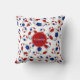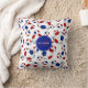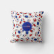 Dit sportieve maar girly voetbalkussen heeft een willekeurig gerangschikt patroon van rode, witte en blauwe traditionele stijl voetballen - witte achtergrond is aanpasbaar - aanpassen met haar naam en monogram op een coördinerende blauw / rode cirkel hanger op de voor / achterkant - door katz_d_zynes