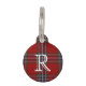 Fun monogrammed label van de hond met de voorzijde in het rode, groene, blauwe, witte klan MacFarlane plaid patroon, met een groot wit monogram met één letter.  De rug van het label wordt gedaan in rood, met witte tekst.  Pas het monogram en de tekst op de rug aan om aan uw behoeften te voldoen.