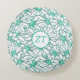 Custom Mooie Blauwgroen en witte bloemen Rond Kussen