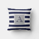 CUSTOM Navy Monogramed Awning Stripe Kussen