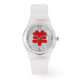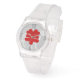 rood ideogram van de geit op papier gesneden illustratie als achtergrond. U kunt de kleur van het ideogram eenvoudig wijzigen door op de knop Aanpassen te klikken. Ontwerp op Silicone Strap Clear horloge met jonge stijlnummers. Perfect voor Chinees nieuwjaar van de geit of verjaardag (mensen geboren in Geitenjaar).