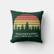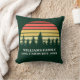 Koele custom zonsondergang gooi kussen in mooi bos groen. Koele gepersonaliseerde familie meerhuis kussens voor uw blokhut aangepast met uw achternaam onder de bomen.