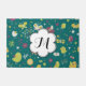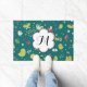 Whimsical Birds and Butterflies deurmat met een prachtig, kleurrijk, artistiek en grillig ontwerp van vogels, vlinders, bloemen, harten en x's. Dit ontwerp bevat vogels en vlinders van wijn, groen en goud op een blauwgroen achtergrond. Deze leuke, kleurrijke, grillige deurmat is voorzien van een witte bloemvorm banner die u gemakkelijk kunt personaliseren met uw monogram initiaal!