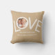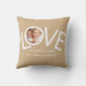 Dit is "We houden van je vader!" Fotokussen is versierd met het woord LOVE in witte typografie op een geelbruine achtergrond. Gemakkelijk aan te passen met uw foto en naam. Perfect als een Vaderdag cadeau.