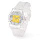 geel ideogram van het varken op een leuke originele tekening als achtergrond. U kunt eenvoudig het jaar en de kleur van het ideogram wijzigen door op de knop Aanpassen te klikken. Ontwerp op Silicone Strap Clear horloge met jonge stijlnummers. Perfect voor Chinees nieuwjaar van het varken of verjaardag (mensen geboren in Varkensjaar).