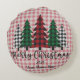 Customizable Plaid Merry Christmas Round Pillow Rond Kussen
