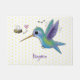 Dit schattige ontwerp is voorzien van een groene en paarse, gelukkige kolibrie met een bijenvriend op een gele poka stip achtergrond. Alles gedaan in de stijl van de vrolijke cartoon illustratie!