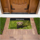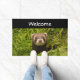 Welkom doormat met een schattige foto met een kleine bruine fret die opstaat in een lang gras. Zo snel mogelijk!
