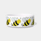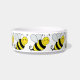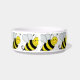 Een grote gele en zwarte hommel met een bijenpatroon met enkele bloemen, harten, zwammen, draden en bijensporen.
