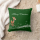 Schattige Rudolf de rode neus rendier op een feestelijke groene achtergrond met een besneeuwde onderste versiering. Schattige en leuk kerstontwerp voor uw kerstkussens.