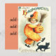 Geef een traktatie naast je truc deze Halloween. Deze afdruk toont een schattige kleine clown met een glimlachende hefboom op de lantaarn, een bezem in de hand en een zwarte kat op de voeten.