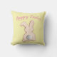 Kute-easter gooit kussen. Geel kussen met een kussen met de achterkant van een katoenstaart met de woorden "Happy Easter" in leuke typografie.