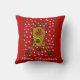 Cute Deer Red Star Pattern Merry Kerstmis Pillow. Stomme en grappige herten met een rode neus op een rode achtergrond met een wit sterpatroon. Geweldig als kerstcadeau voor kinderen.