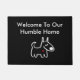 Hier is een schattige thuiswelkomstmat met een schattige handgetekende hond met een rode hartvorm en tekst die "Welkom bij ons Humble Home" zegt. Een hondenliefhebber die op een warme en vriendelijke manier de gasten, familie en vrienden naar je huis wil verwelkomen.