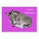 Kute kleine grijze ezelige baby foal op een paarse achtergrond. De tekst luidt: "Happy Birthday!" Op de voorkant en binnen 'Mei wil al je verjaardag Donkeys zijn!' Alle tekst kan worden gewijzigd in woorden van uw keuze.