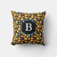 Cute Emoji Print Pillow met Monogram op zwart Kussen