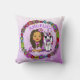 Kunstfee en eenhoorn, paars, roze, gooi kussens voor een klein meisje. Voeg haar naam in het aanpassingsgebied toe. bloemen en vlinders van alle kleuren zoals roze, geel, blauw, groen en een paarse achtergrond. Deze meisjesfee kan Afrikaans-Amerikaans of Latijns-Amerikaans zijn.